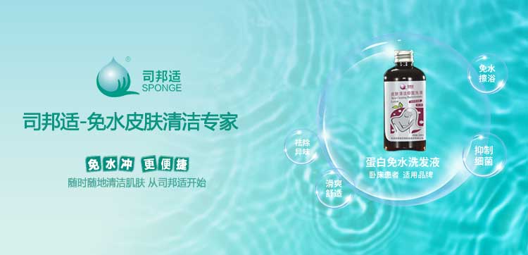 ? ? ? ?本公司研發(fā)的司邦適蛋白表面活性因子,不僅對(duì)人體皮膚及粘膜沒(méi)有刺激,同時(shí)具有對(duì)皮膚很強(qiáng)的清潔能力;可以祛除人體皮膚上的異味,并且具有較強(qiáng)的抑菌功效。使用后無(wú)需用水沖洗皮膚仍感到舒適爽滑;基于上述原因我們研發(fā)的司邦適免水清潔系列產(chǎn)品。主要適用于各種主觀或者客觀上不方便全身或局部皮膚清潔的人群。